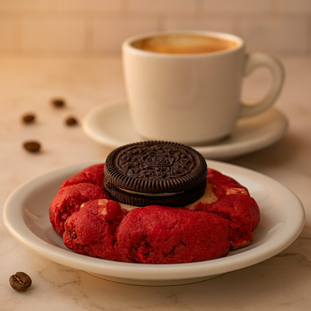 Nuestra Cookie New York Red Velvet tiene esa textura suave y esponjosa del red velvet, con pedacitos de chocolate blanco y coronada con una Oreo bien crujiente en el medio. Ideal para acompañar un cafecito o para darte ese gustito dulce que te merecés.